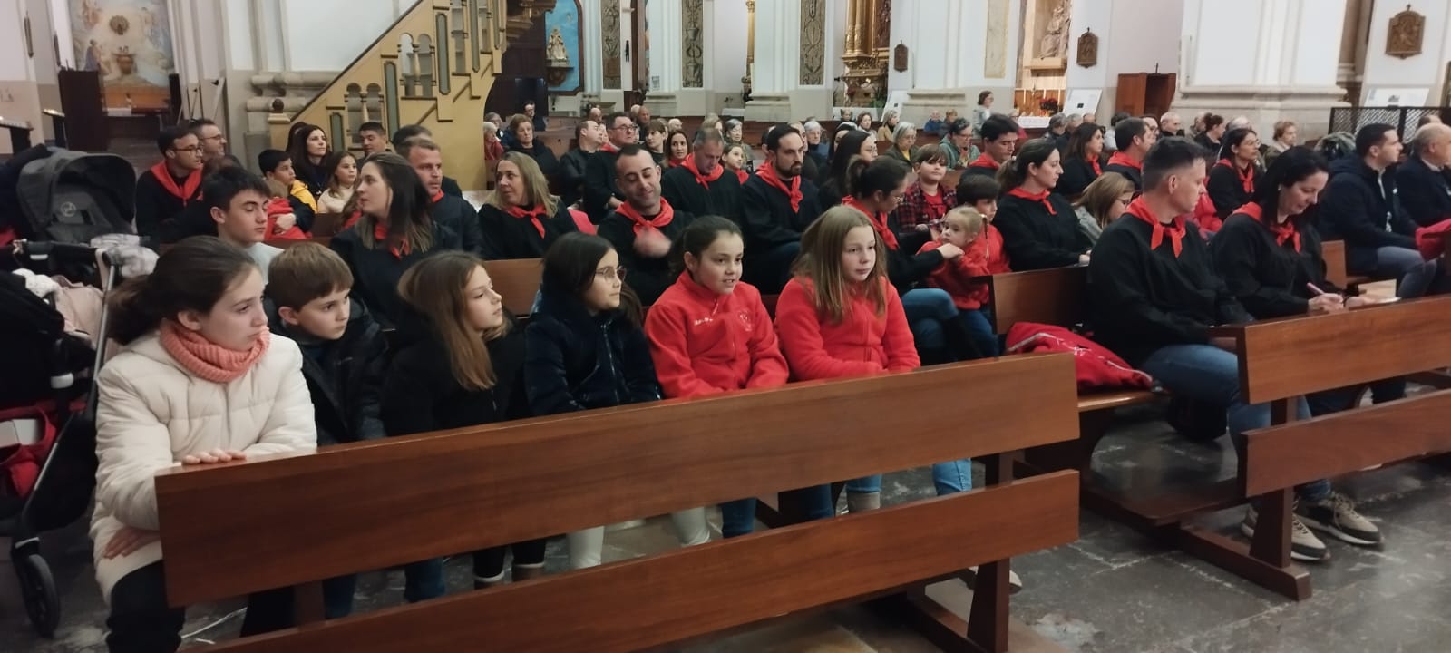 Al finalitzar la missa, oficiada pel consiliari de la confraria, mossèn Carlos Garcia Talarn, com és tradició, s'han beneït els rotllos que engalanaran l'altar de dissabte i les estampetes de la festa 2024, a més de figures del sant, entre d'altres objectes.